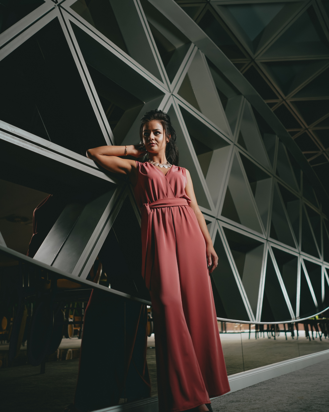A fluid lyocell jumpsuit designed with a soft drape and effortlessly refined silhouette. The wrap-style front creates a flattering V-neckline, while gentle gathers at the shoulders add a touch of femininity. Finished with a self-tie belt that shapes the waist and wide, graceful legs, this piece moves beautifully and feels weightless on the skin. A timeless, easy elegance for warm days and serene evenings.